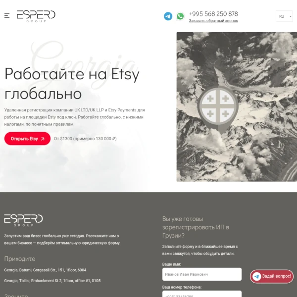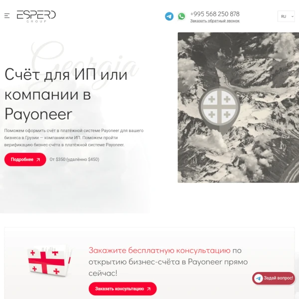 Мой опыт работы с компанией Espero был исключительно положительным. Они предоставили мне высококачественную помощь и поддержку на каждом этапе процесса регистрации. Я искренне рекомендую компанию Espero всем, кто ищет надежного партнера для оформления ИП в Грузии.